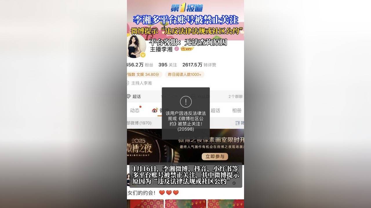 最近社交平台突然爆出大瓜,李湘的账号竟然被限制关注了!不少网友早上还在刷她的动态,转头就发现点不了关注,瞬间在评论区炸开锅,各种“怎么回事”“求真相”的提问刷屏,这瓜来得实在太突然了!